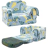 Airpanda Comfy Toddler Chair and Couch for Kids with Blanket,2-in-1 Soft Plush Fold Out Toddler Couch for Girls and Boys,Convertible Sofa to Lounger for Playroom,Glowing Dinosaur