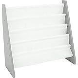 Humble Crew 4-Tier Kids Bookshelf, Grey Wood/White - Premium Book Shelf for Kids Rooms with Four Deep Pockets - Toddler Sling Book Rack with Deep Sleeves, Nursery Bookcase Organizer